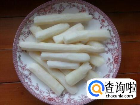 山药削皮,一定要带手套,不然皮弄在手上会很痒的,所以一定要注意。