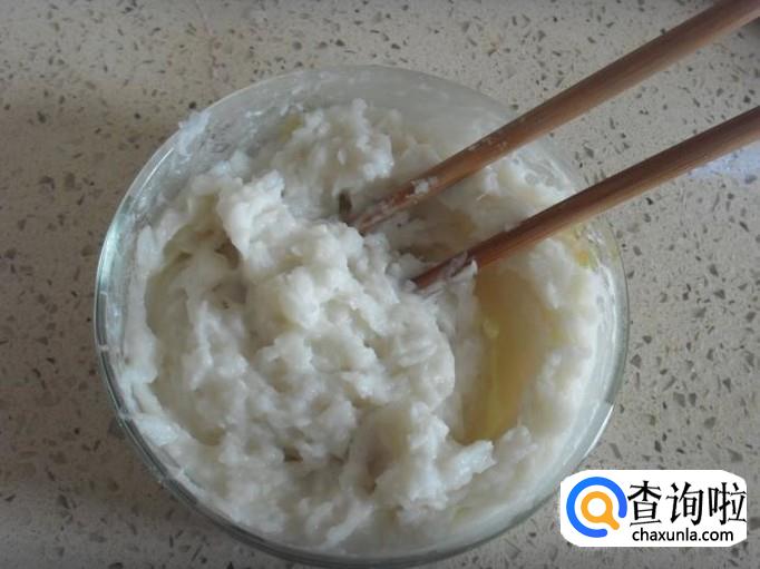 放进一个容器里,用勺子捻成泥,或者用搅拌机打成泥都可以。