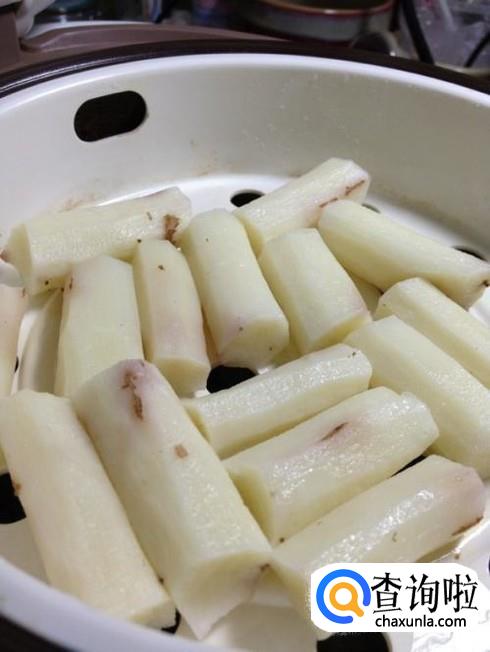 锅中掺水,放上蒸笼,将削皮了的山药放进去,水开后等15分钟后取出。