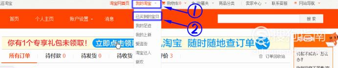 登录成功后,把鼠标放在“我的淘宝”位置,然后再点击“已买到的宝贝”。