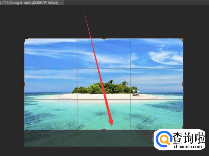 将水印部分拖动到裁剪区域以外,然后点击确认键即可,这样既不影响整张图片的使用,也去掉了水印,如图所示。