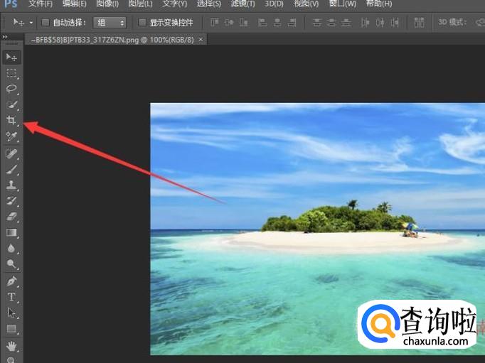 进入PS主页面,打开想要消除水印的图片,然后点击图示位置的裁剪按键,如图所示。