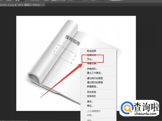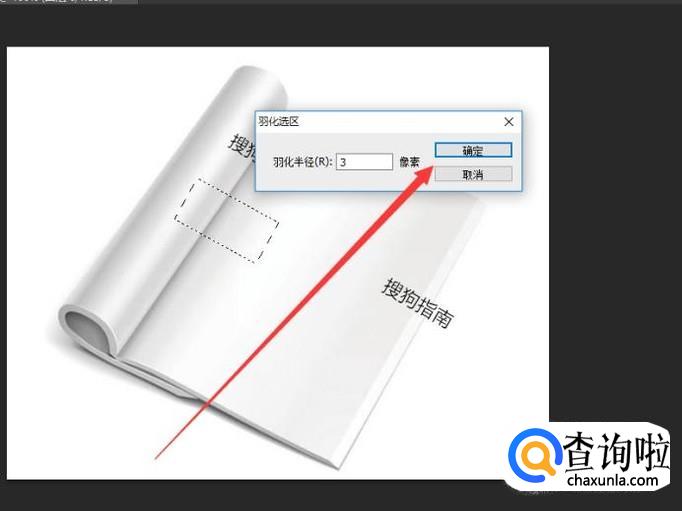 将其向下移动,点击“对勾”,右击鼠标,点击“羽化”,将羽化半径设置为3,点击“确定”,如图所示。