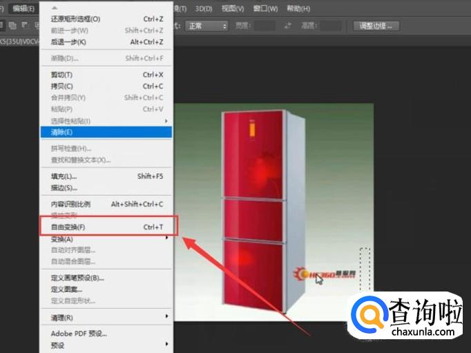 选中之后,在“编辑”菜单中找到“自由变换”,选择“自由变换”,将选中区域从右往左拉,点击回车即可将水印去掉。