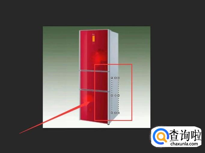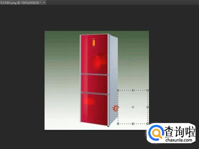 背景色是单色或者是线性渐变色可以用拉伸法进行去水印,在图示位置选中一个选区,如图所示。