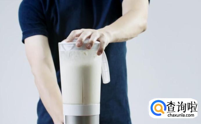 再将浸泡好的黄豆连水一起用料理机均匀地打成豆浆。