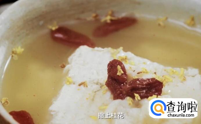 吃不完的豆花,加些煮沸的甜酒酿和枸杞,放入冰箱冷藏一下,撒上桂花,就是清凉的冰醉豆花了。