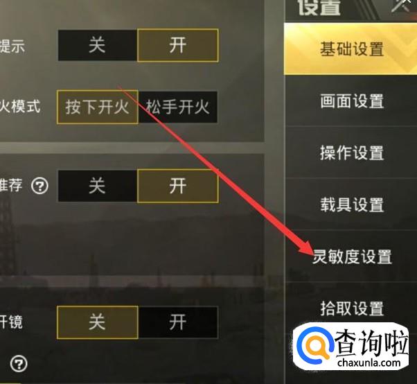 进入到设置界面,点击“灵敏度设置”,进入下一页面,如图所示。