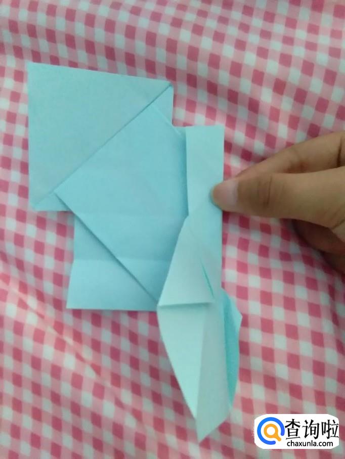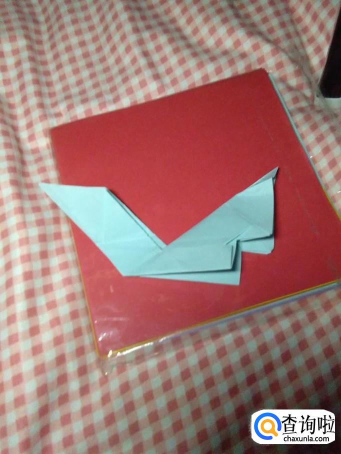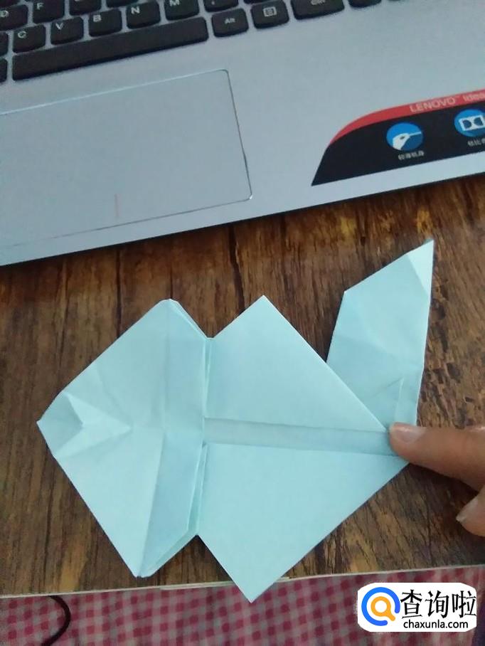 在头部折个小角,稍微打开,尾部也折个小角