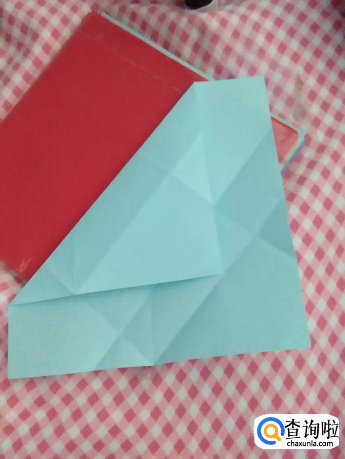 然后将作品翻过来,将下面的角翻上来,如图。
