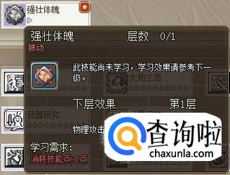 一转之后会解锁另外一个被动技-强壮体魄,也是提升攻击力的,个人觉得也需要加满,不过这可以等转职铁匠之后再加。