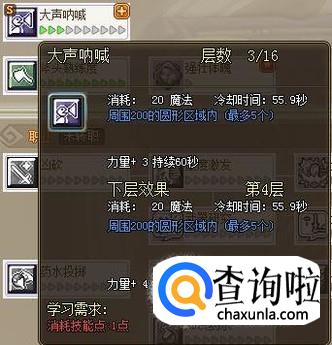 然后是大声呐喊,也是群体技能,不过是群体被动技能,加个2、3点意思下就行了