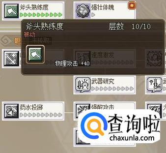 接下来是斧头熟练度,被动技,提升攻击力,必须往死里加;