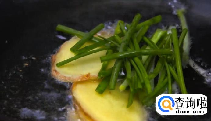 热锅起油,等油烧到微微冒烟时,投入姜片和葱段爆炒。