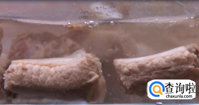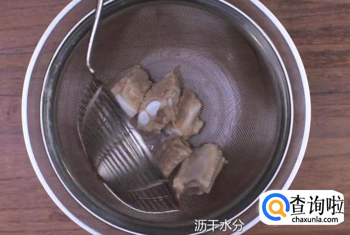 待水沸腾后,捞出排骨,倒入冷水中撇去血沫。