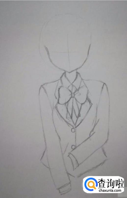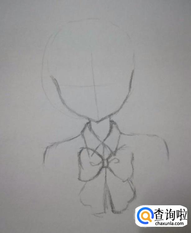 接着画出女孩的脖子、衣领、肩膀、蝴蝶节。