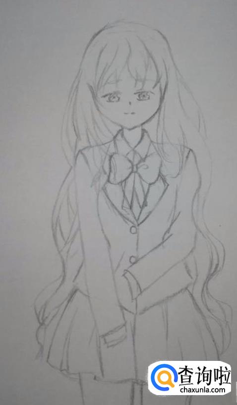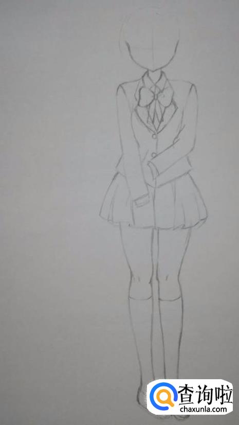 然后是画出下半身的衣服,我这里画的是百褶半身裙。