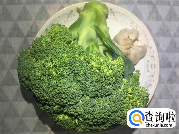 准备好所有食材:新鲜的西兰花一颗,蒜头四瓣。