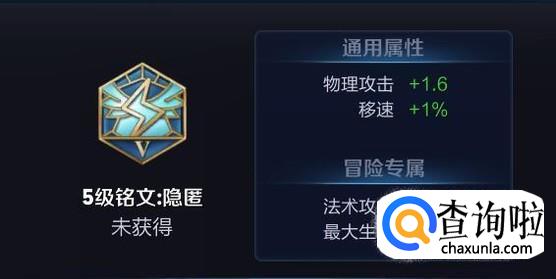 蓝色铭文小编我会选择五级铭文:隐匿*10