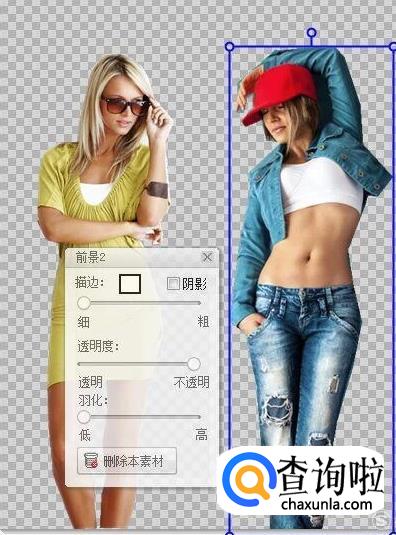 抠好的两张图片都在饰品下面,我们任意选择一张作背景,然后把另外一张图片添加进到效果中。