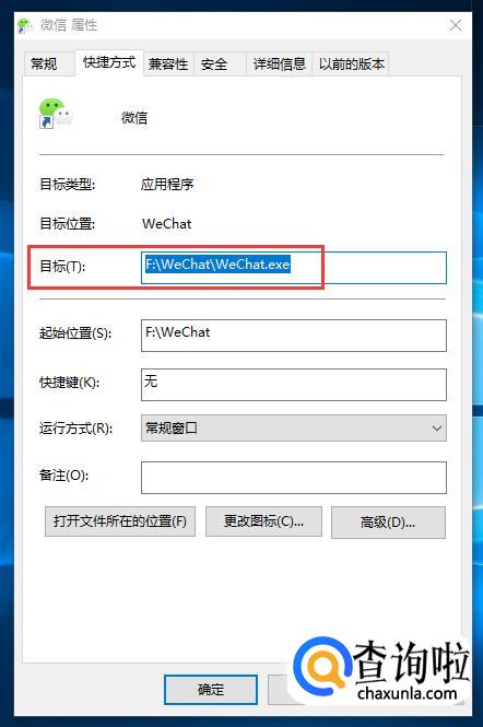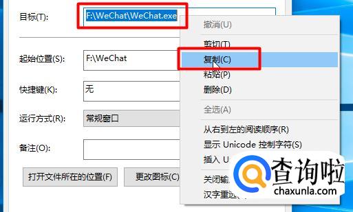 在【属性】界面里,找到【目标】选项,将【目标】内容复制下来。