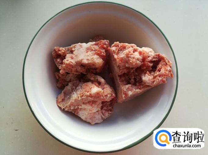 把冰箱里冷冻的猪肉泥,拿出来放盆里消开。