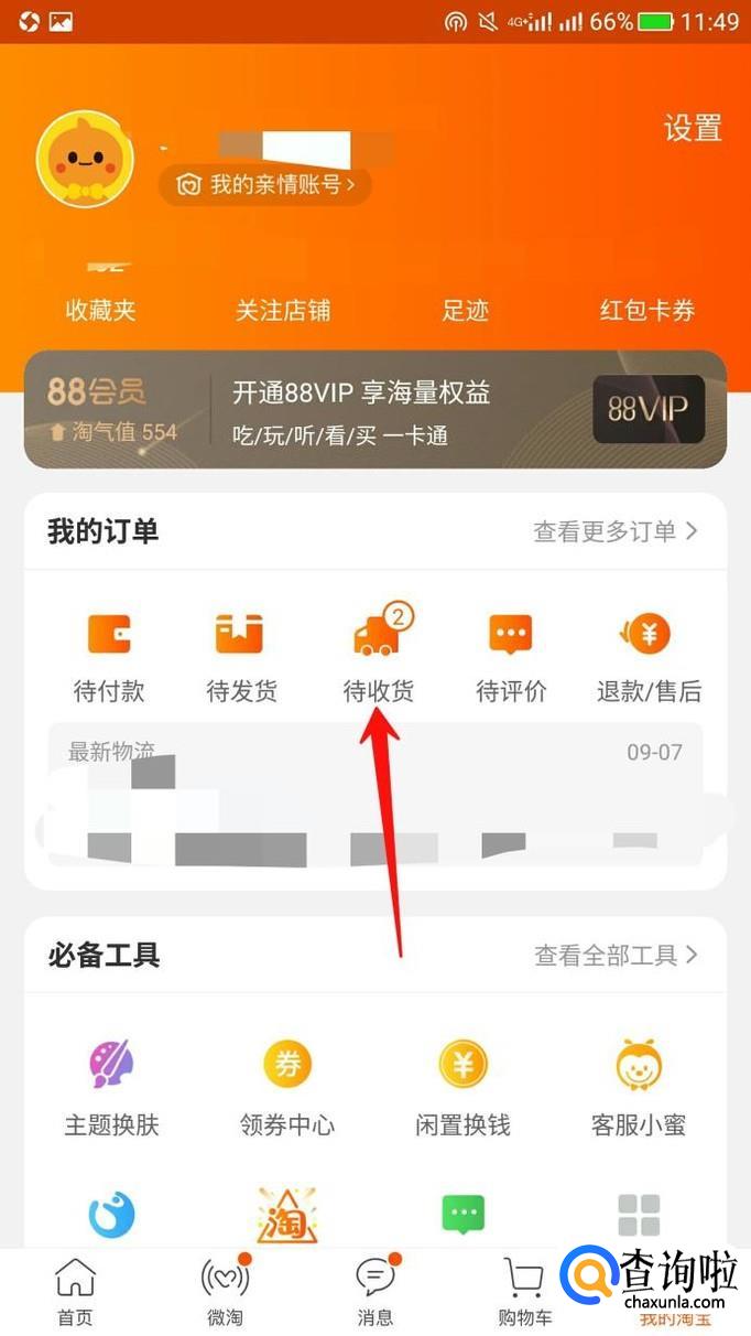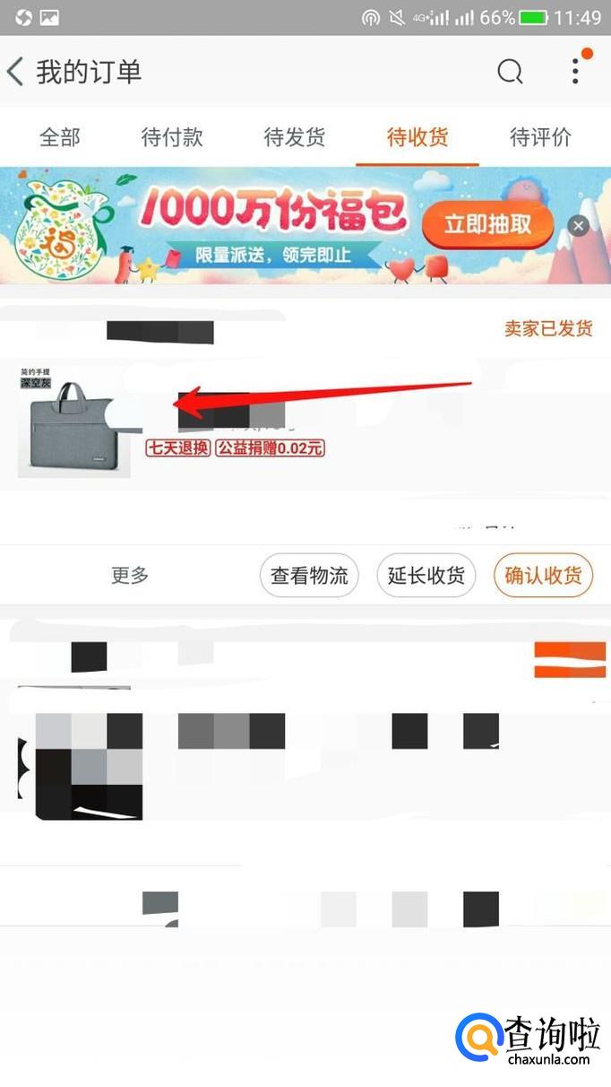 进入之后,我们可以看到待收货的标识,然后点击。