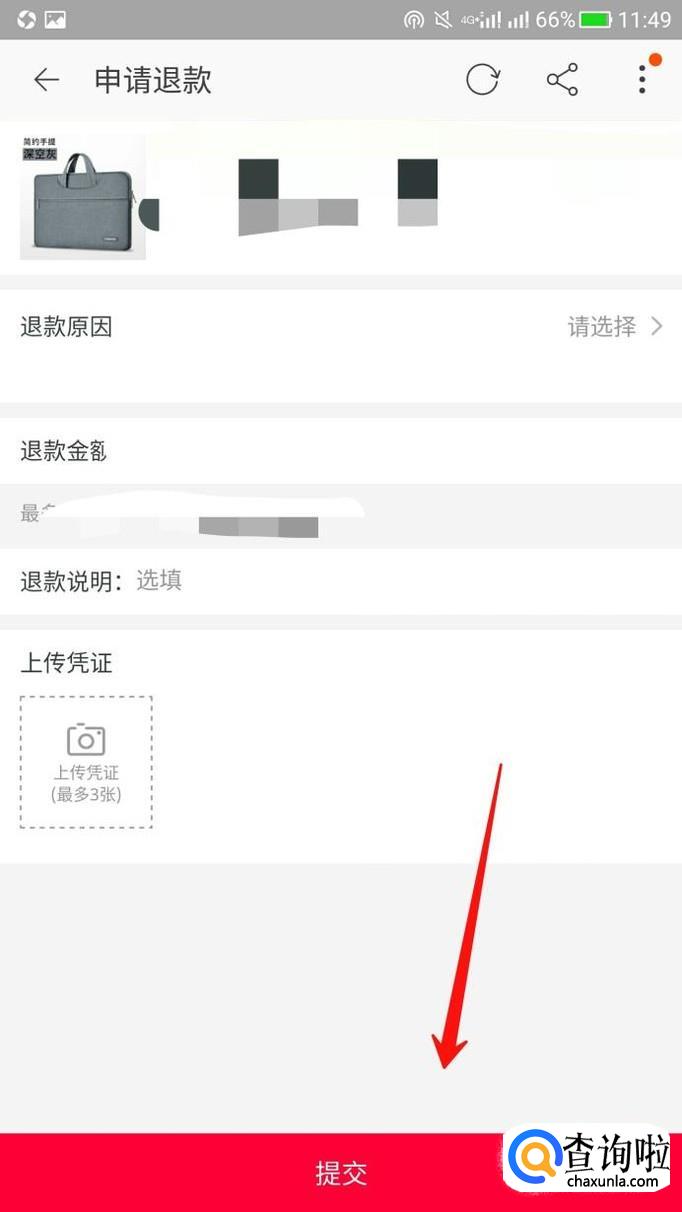最后将退货退款的相关信息填写好,点击提交,等待商家回复即可。
