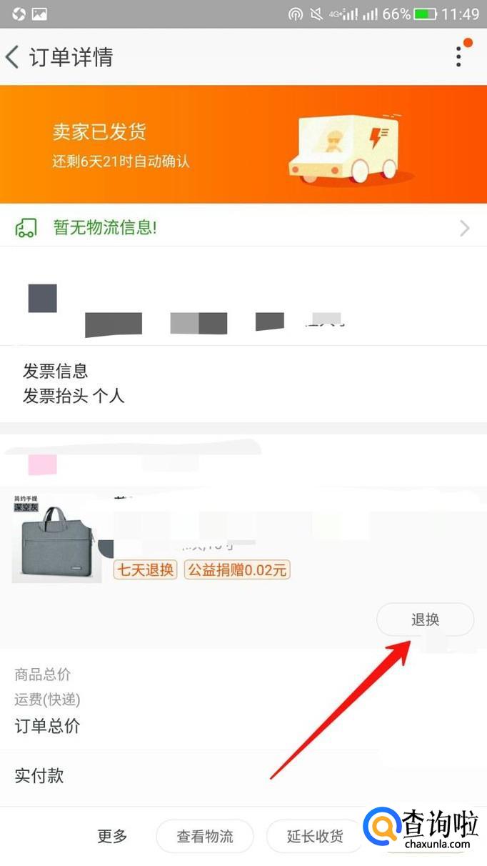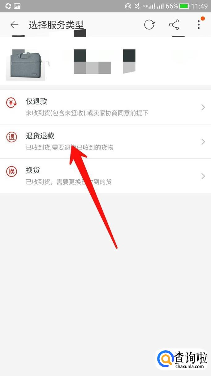 进入以后,点击退换。