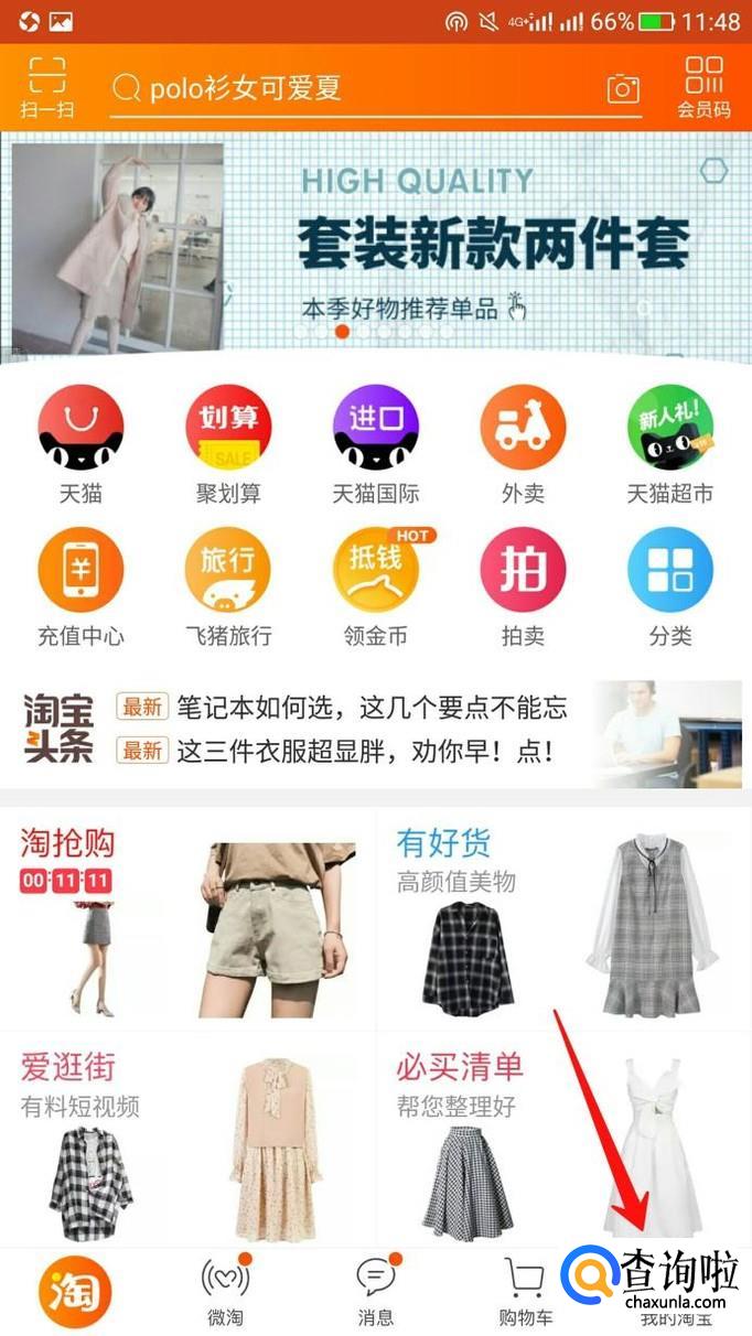 首先打开淘宝,点击我的淘宝。