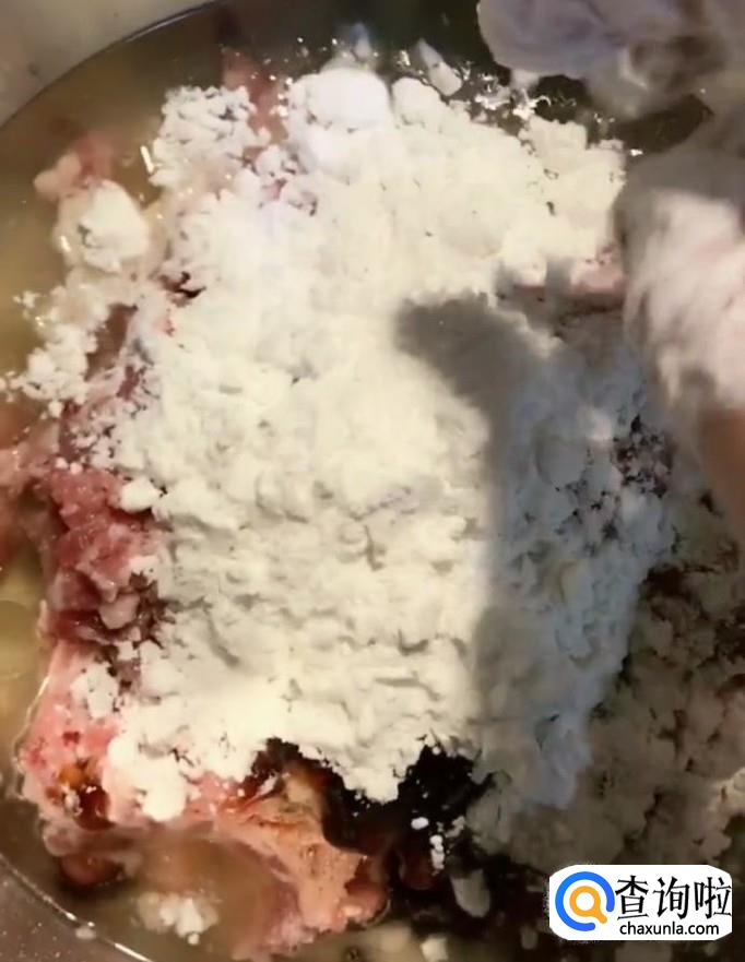 首先我们将一斤猪肉馅放入一个盆中