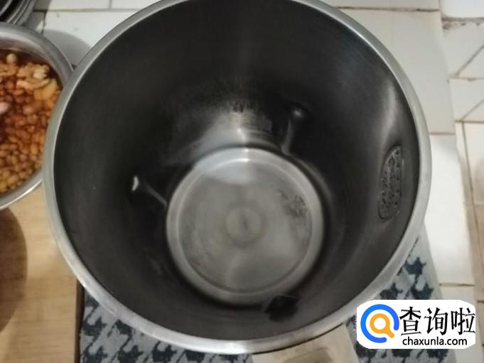 用豆浆机到这一步加水很关键,豆浆机本身里面有三个水的限位,最多加水量不能超过上面的限位,水过多过少都会影响程序完成,不能按时打出豆浆。我是准备3人的量,选择加入纯净水到最高限位。