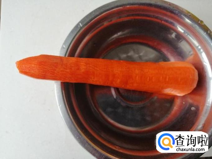 早晨起来取一根稍小点的胡萝卜,用清水洗净,有时胡萝卜外皮不光滑时,以防洗不干净最好去皮,我这是去包皮切掉两头待用。