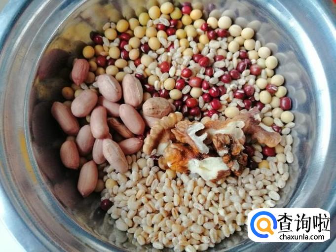 大家知道麦仁、花生、芝麻也含有人体所需的多种元素,特别芝麻补钙效果很不错。取二分之一杯麦仁,花生不超过10粒,芝麻适量,这里所用的芝麻最好是炒熟的,都取好待用。