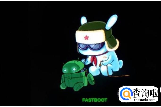 手机关机,然后按住音量“-”键不放再按开机键(10秒),等屏幕出现fastboot和一只兔子(如下图),就放开按键,随后连上电脑。