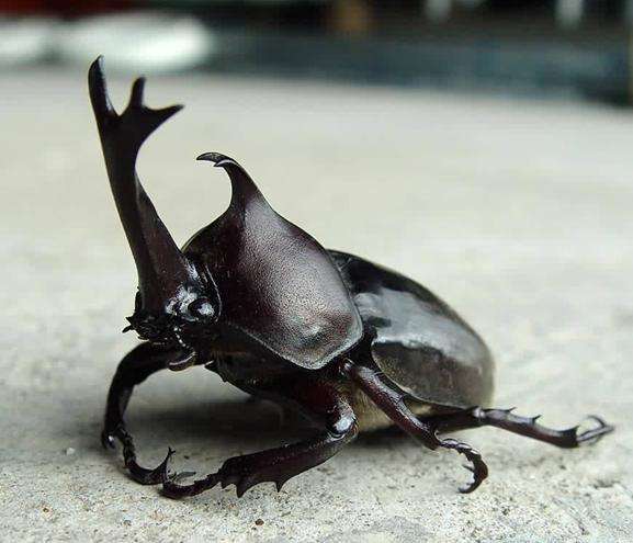 独角仙又称双叉犀金龟、兜虫,俗称独角仙,身体大而威武,它具有较高的药用价值,因此被广泛饲养。根据研究发现,全世界具有大型犄角的独角仙目前约有60种,其他犄角较小或不明显的种类约有一千三百多种。幼虫生活在腐植土及朽木中,大颚犟壮有力,啃食腐植土及木材;成虫则吸食树汁为生,饲育时可喂食苹果、凤梨等。