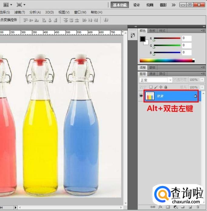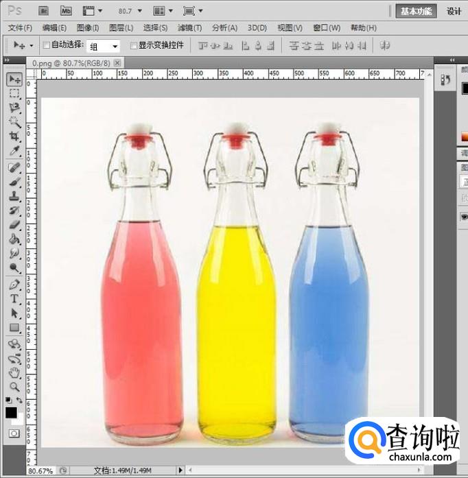 首先用ps打开要处理的饮料瓶图片;