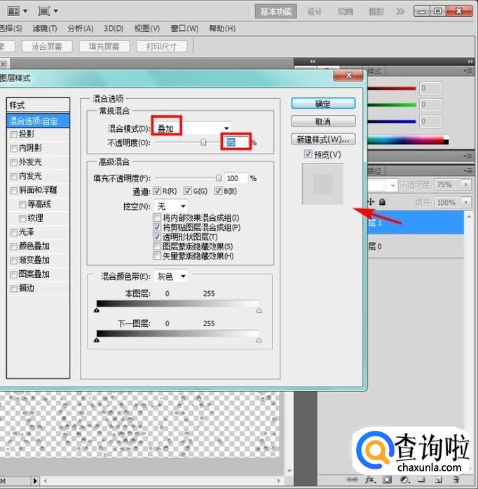 右键图层1,选择混合选项,设置如图,到此,水珠就做好了;
