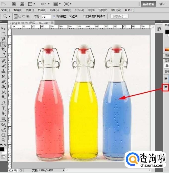 再新建一个图层用于制作水珠,隐藏饮料瓶图层;