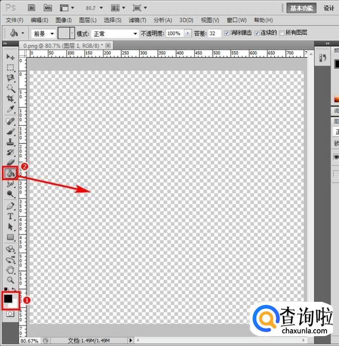 调整前景色为黑色,背景色为白色,再用油漆桶工具填充新建的图层;