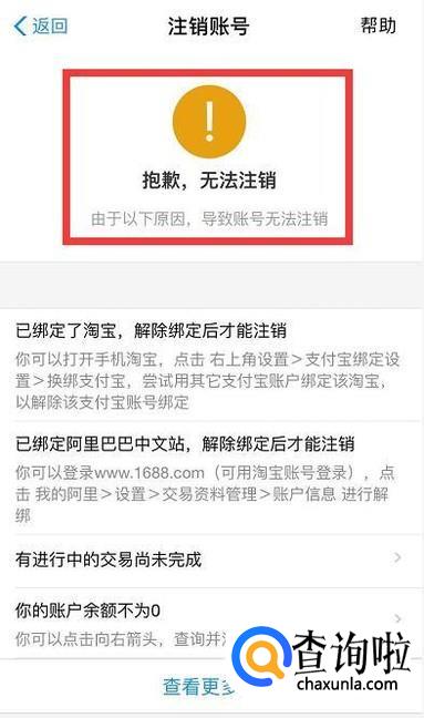 然后就可以把支付宝账号注销了。如果支付宝有余额,或者绑定其他服务,就无法注销的。
