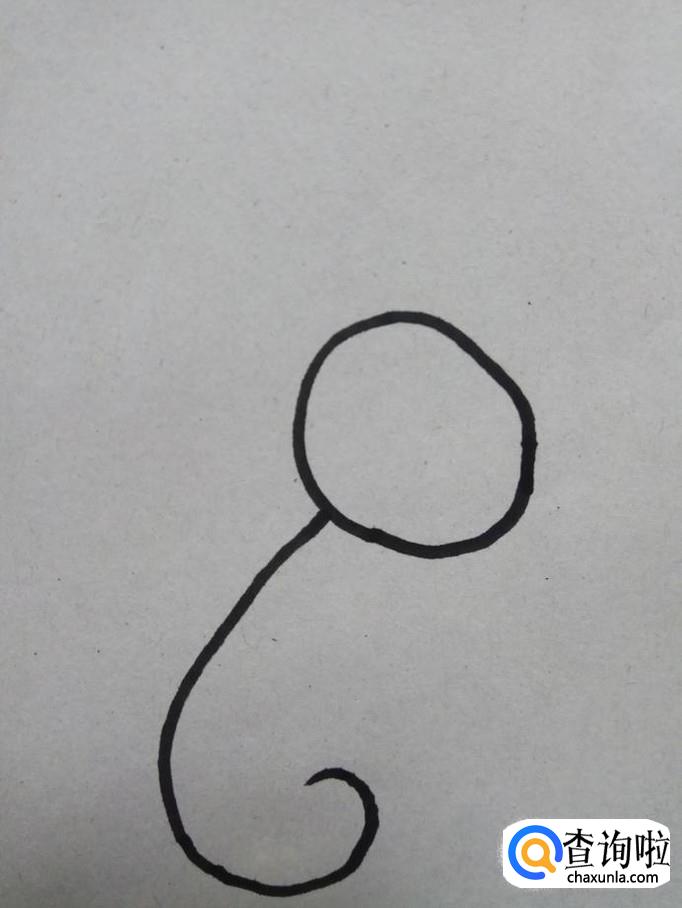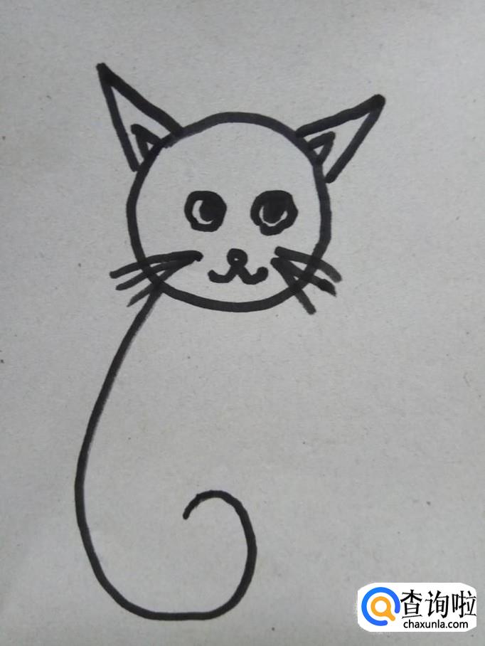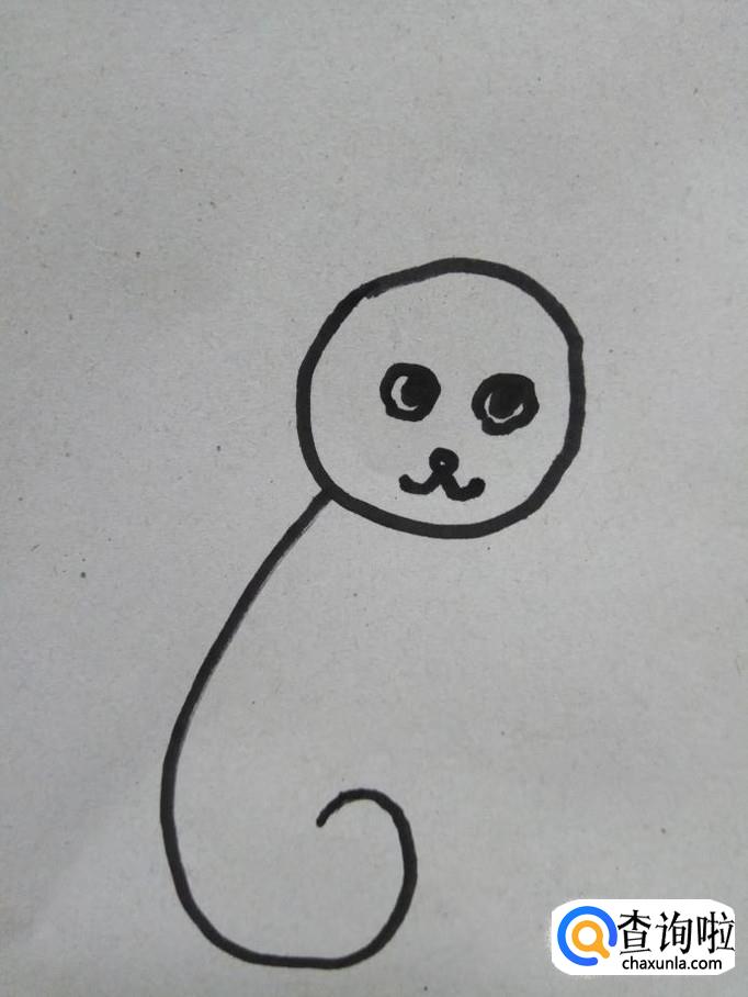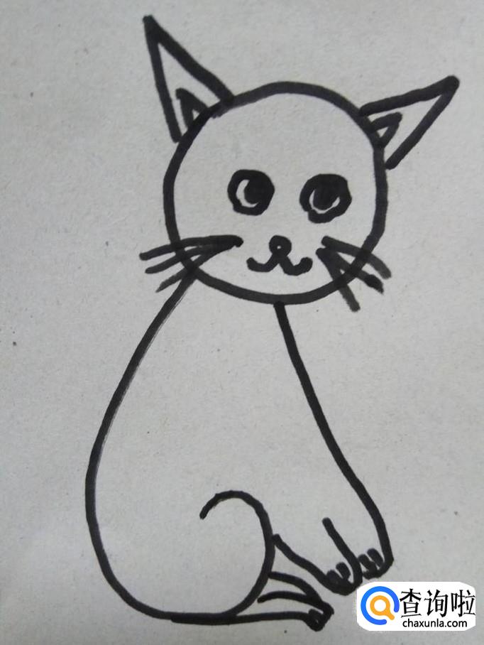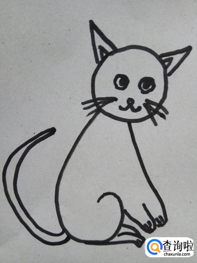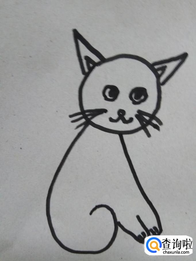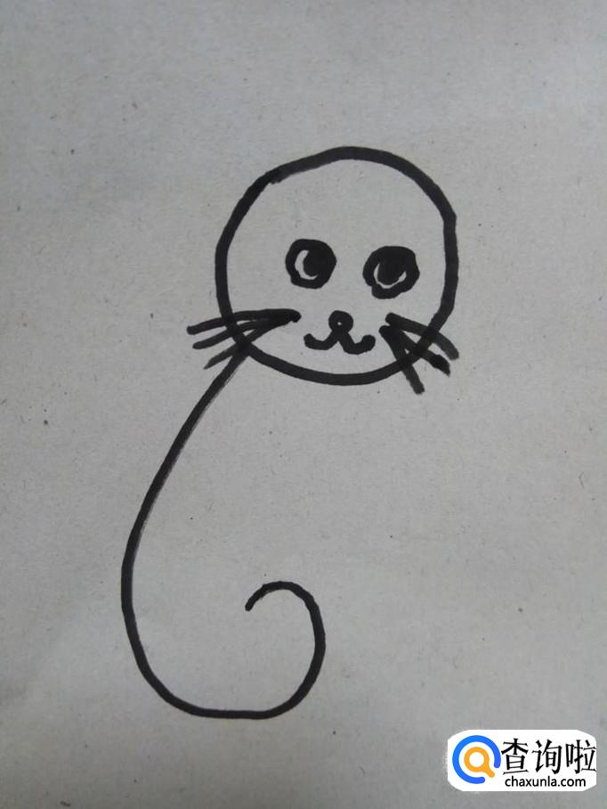 在小猫的身后划出两条的曲线,尾部连在一起,这就是小猫的尾巴。