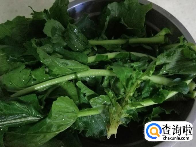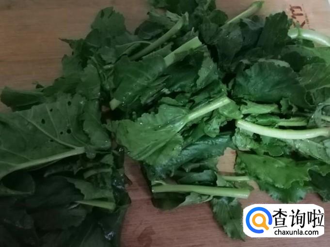 适量青萝卜叶子,用清水把萝卜叶子洗净,然后切几刀待用,不用切太碎,一会得先焯水。