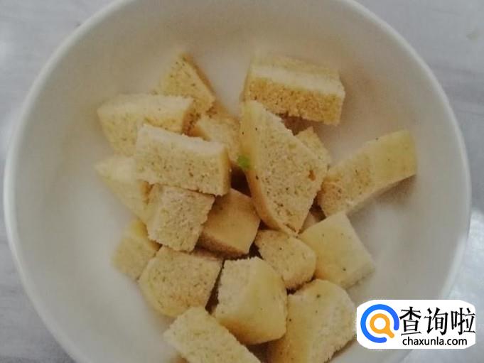 最好选用半个粗粮馒头,把粗粮馒头切成馒头丁待用。血糖高的人最好是一次少食多餐,所以不用粗粮馒头太多。