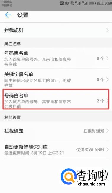 之后我们看到有个勾选了,我们点击选中其他的白名单号码;