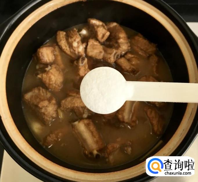炖至50分钟左右加入适量的盐调味儿,放入切好的海带继续炖煮15分钟即可