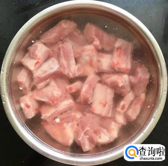 猪肋排1000克左右斩成块状,放入容器中加入足量的清水浸泡两个小时去血水,期间换几次水