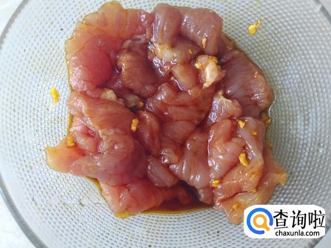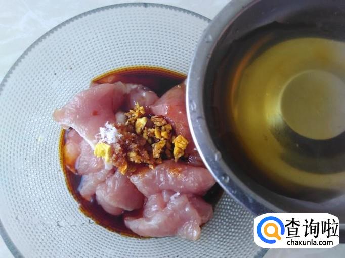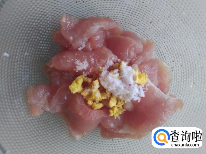 把瘦肉切成片,加适量的盐、姜蓉。