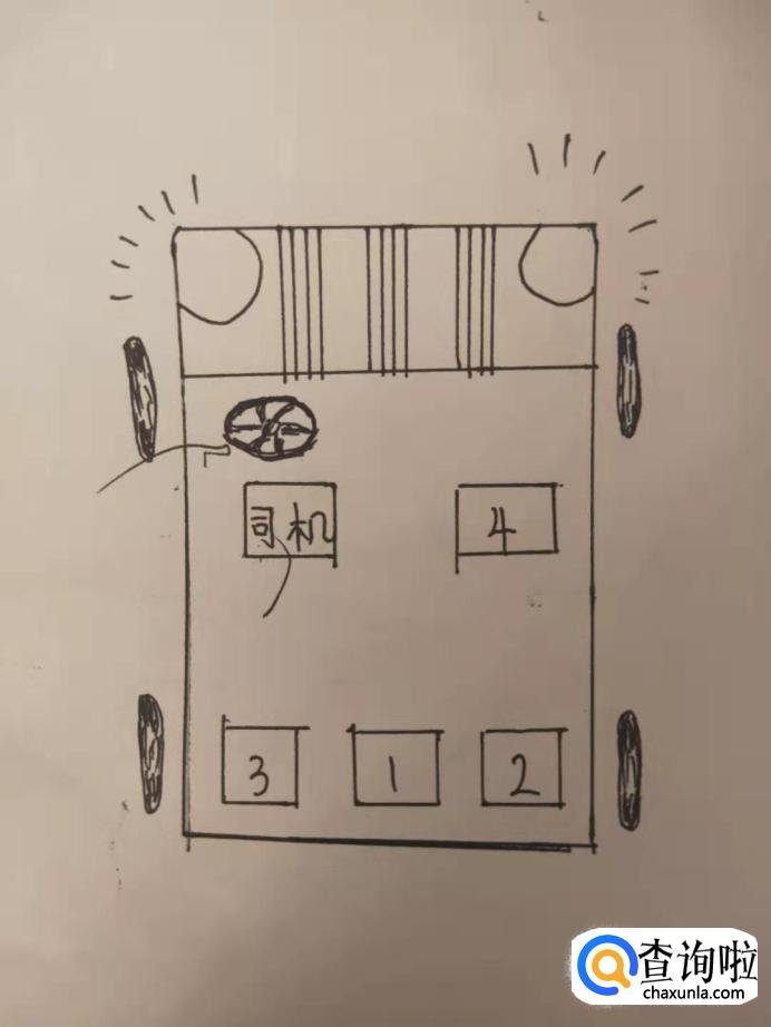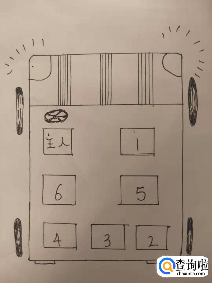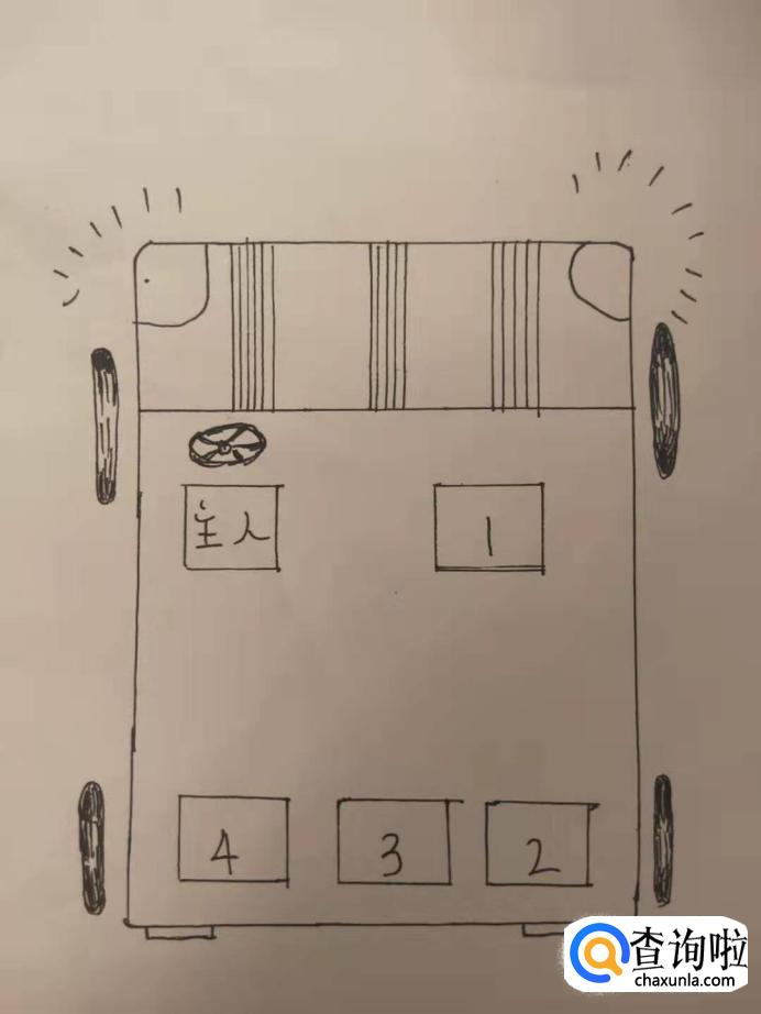 自驾的三排小型轿车:这类车型都是可以做七个人,如果是车主开车,以前排座为上,然后在以尊者从最后一排就坐,最后再到中排座。(如图所示)