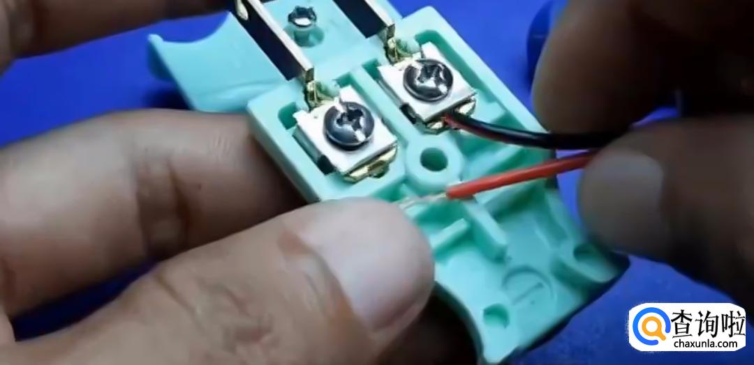 之后我们把电线从插头底部的螺丝固定档位中穿过去,之后拧紧固定螺丝。